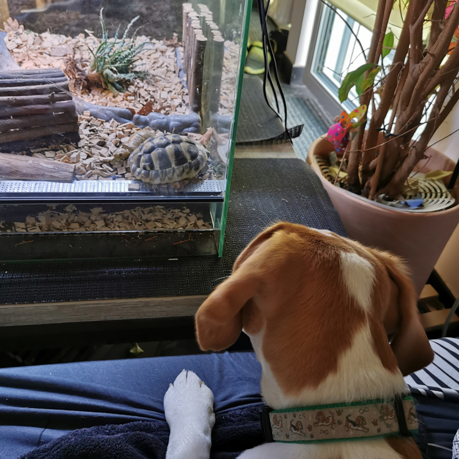 Beagle Findus und Landschildkröte Trio gehören zur Familie und bereichern auch das tägliche Leben in der Kindertagespflege. Die Fohlenkids lieben die Beiden und kümmern sich liebevoll um sie.